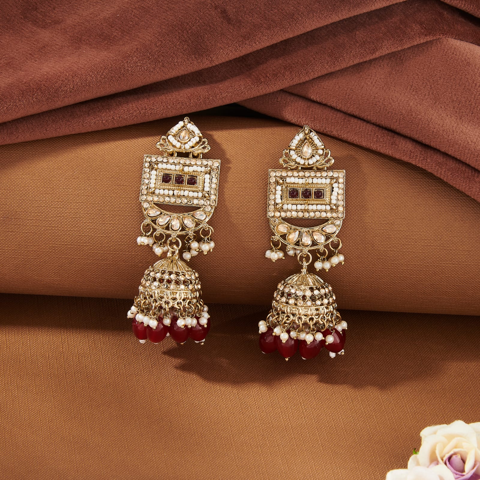 MAHEK JHUMKA EARRINGS WITH RED BEADS