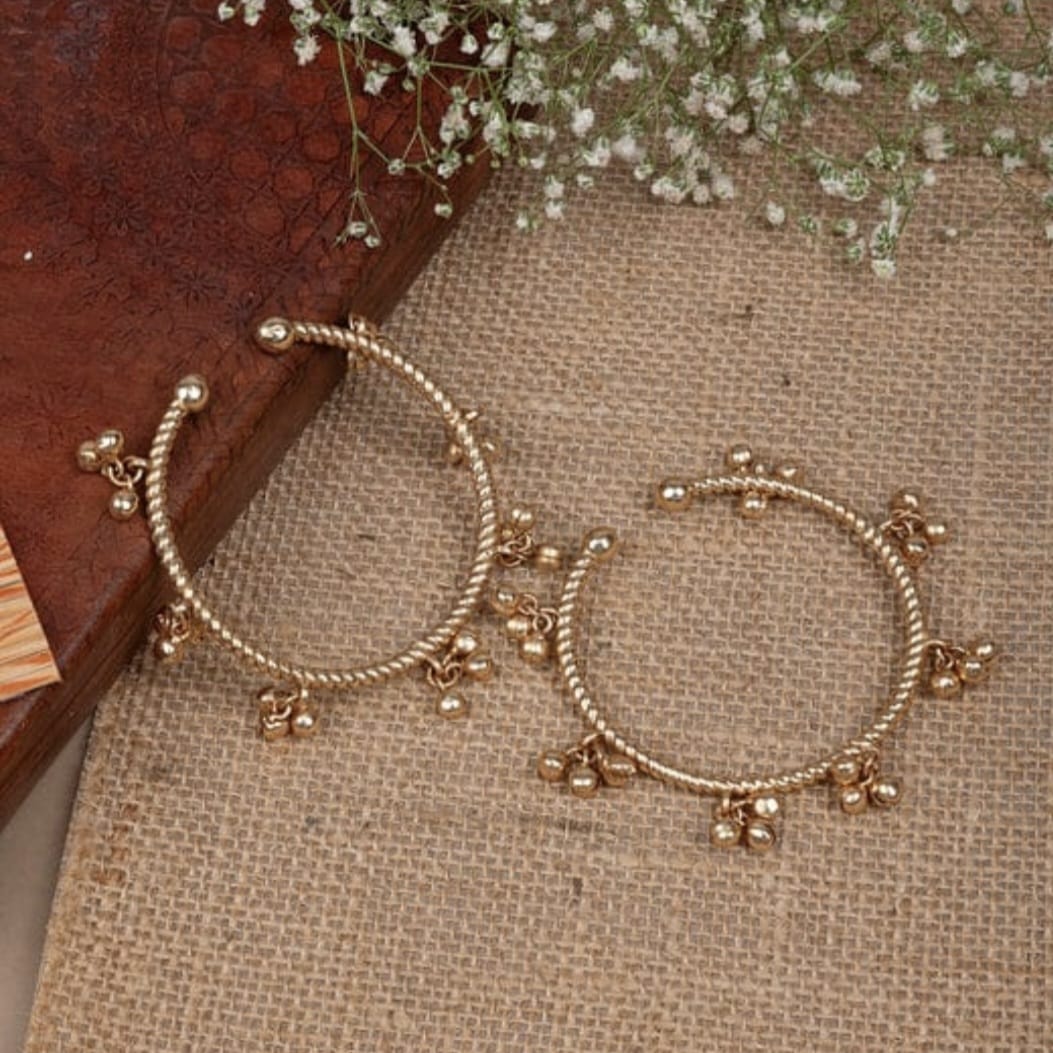 Discover the enchanting allure of Chan-Chan Ghungroo Bangles, where traditional craftsmanship meets contemporary style. These melodious bangles produce a captivating jingling sound that draws admiration wherever you go. Featuring an adjustable design, they fit comfortably on any wrist and seamlessly complement your entire wardrobe—from casual everyday wear to festive occasions. Experience the timeless elegance and musical charm that makes these ghungroo bangles an essential addition to your jewelry collection.