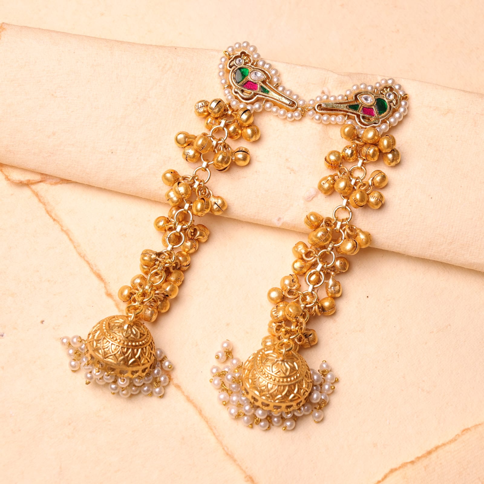These stunning ghungroo earrings are more than jewelry—they’re a celebration in themselves. Each delicate ghungroo sways gracefully, creating a soft, musical chan-chan that’s bound to capture hearts. Ideal for adding a touch of festive magic to any outfit.