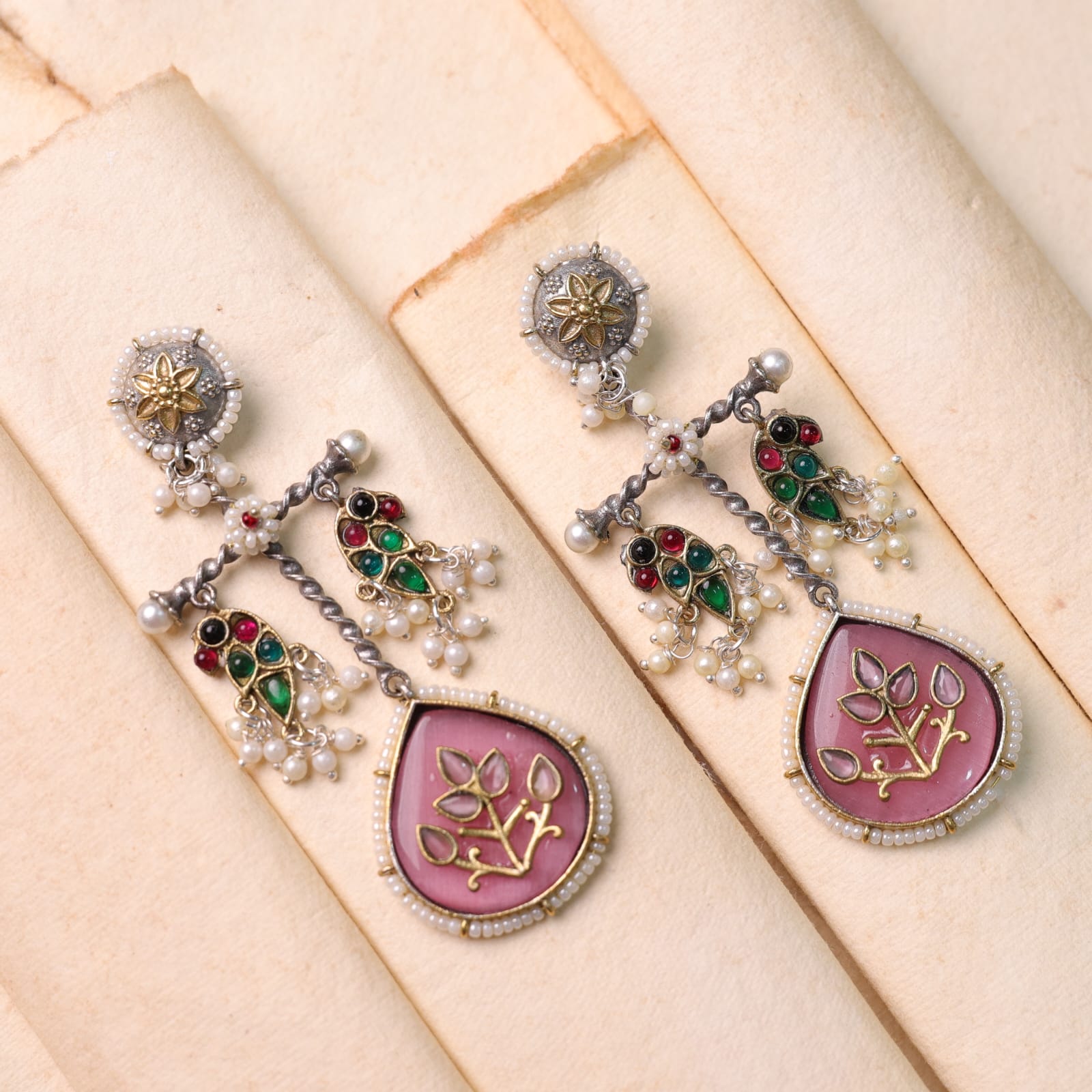 Falak Fusion Danglers blend traditional craftsmanship with contemporary style, featuring delicate pachi kundan detailing and an oxidized finish. These lightweight earrings offer elegance without compromising comfort, making them ideal for both everyday wear and special occasions. Their sophisticated design adds a refined touch to any outfit while ensuring ease of use throughout the day.