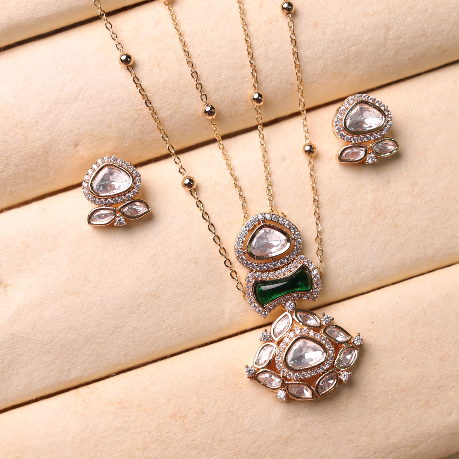 Elevate your style with the Mishi moissanite pendant set, featuring a finely crafted Italian-style chain and an 18kt lumious polish finish. This elegant piece is designed to enhance your look for small occasions and outings, adding a subtle yet regal touch to your ensemble. Its brilliant moissanite centerpiece offers lasting sparkle, making it a sophisticated choice for those who appreciate expert craftsmanship and timeless beauty.