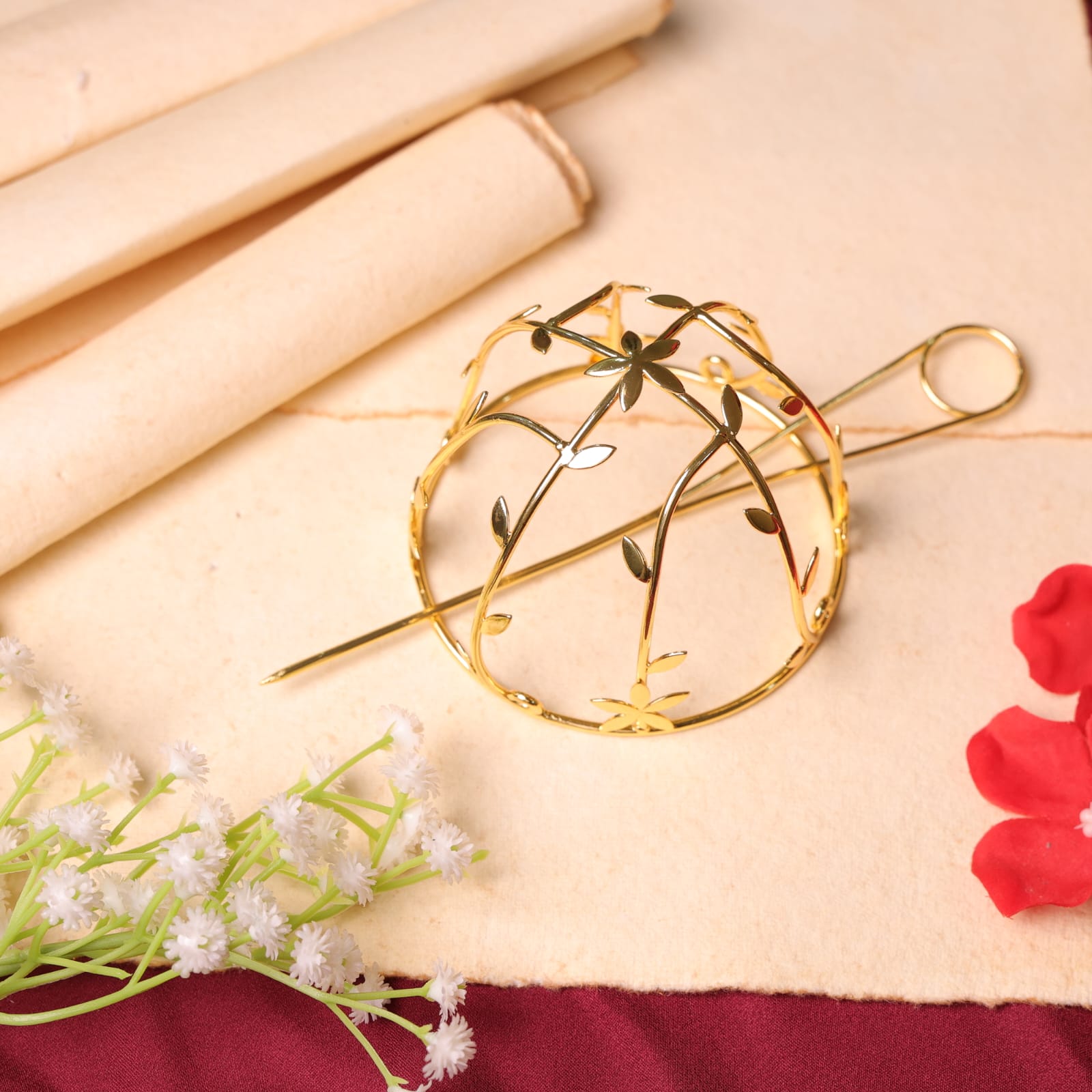 An eye-catching hair accessory that effortlessly captures attention. This show-stopper piece adds a statement touch to both traditional and Indo-Western outfits, making it a must-have for any special occasion.