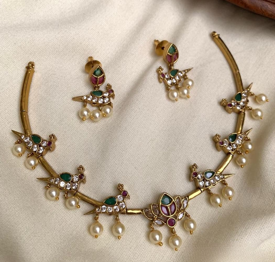 A stunning fusion of birds and lotus motifs, finished in a luminous gold polish that turns heads and adds an air of refined elegance to your look.