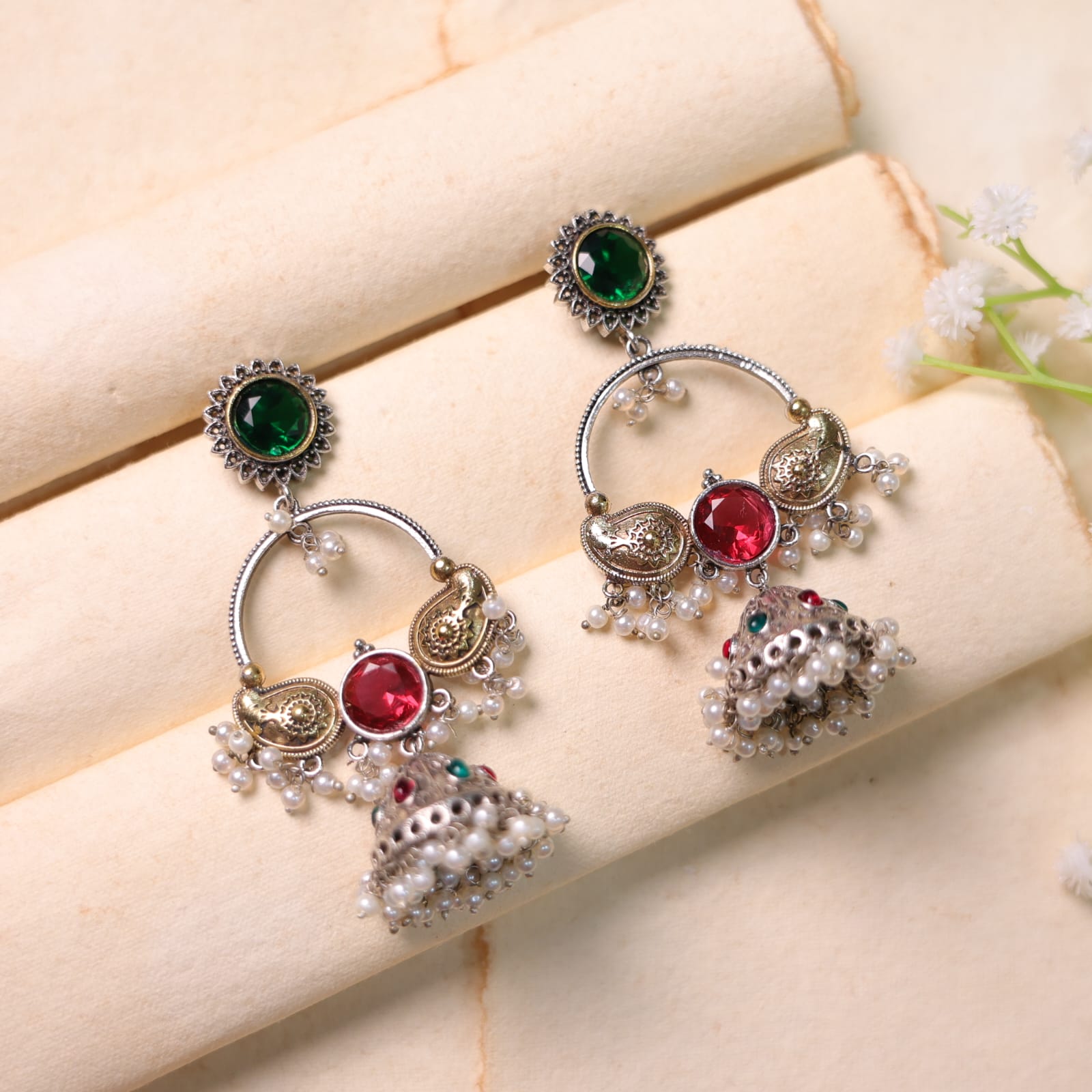 Mehek Fusion Chandbali blend traditional craftsmanship with contemporary style, featuring delicate pachi kundan detailing and an oxidized finish. These lightweight earrings offer elegance without compromising comfort, making them ideal for both everyday wear and special occasions. Their sophisticated design adds a refined touch to any outfit while ensuring ease of use throughout the day.