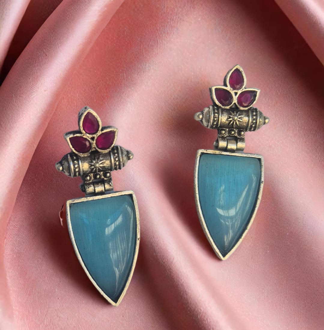 Upgrade your everyday look with the elegant LIGHT BLUE NANDINI OXIDISE EARRINGS. Adorned with striking MAGENTA PINK STONES, these earrings will effortlessly elevate your style. Stand out and feel special with this must-have accessory.