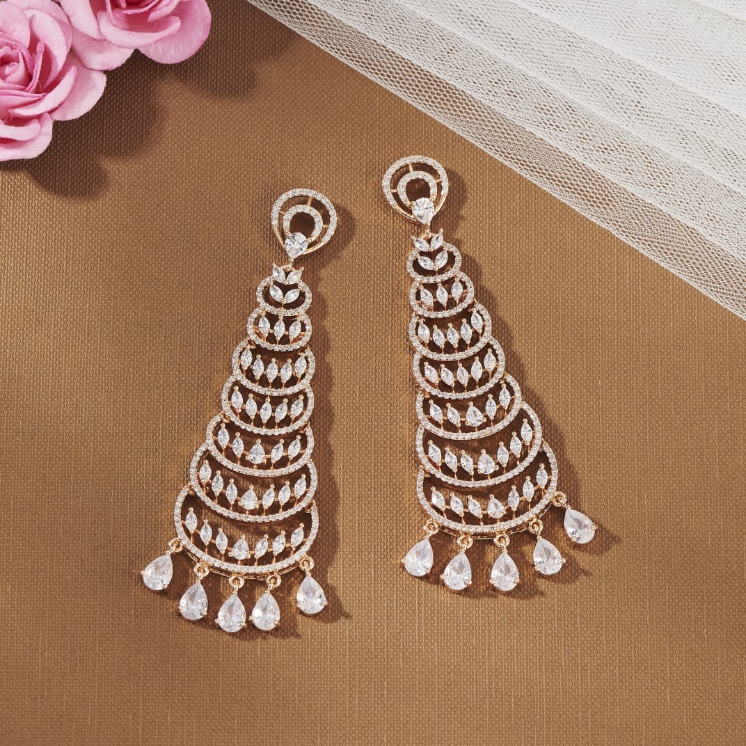 Elevate your style with PRISHA ZIRCONIA EARRINGS. Perfect for parties, these stunning earrings with ROSE GOLD POLISH are sure to turn heads. With exceptional quality and design, they are a must-have for any fashion-forward individual. Upgrade your look with these outstanding statement pieces.
