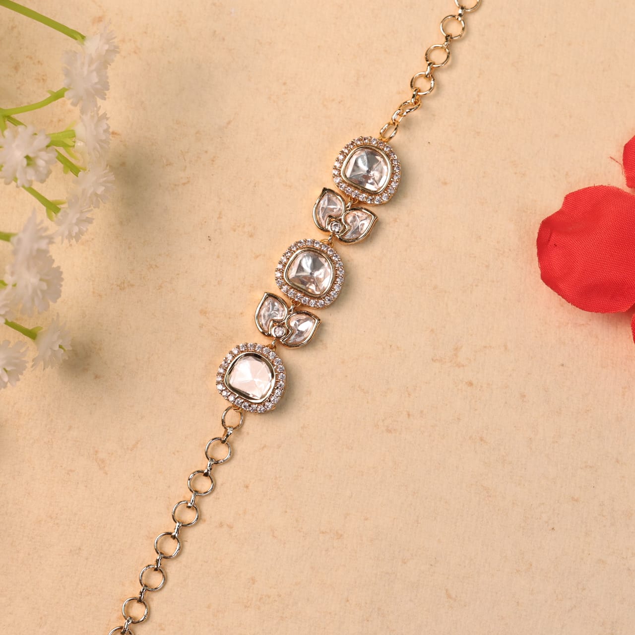 Elevate your elegance with the Regal Moissanite Bracelet, expertly crafted to mirror the brilliance of genuine gemstones. Featuring a flawless 18kt polish, this classic piece enhances your wrist with timeless sophistication. Designed to captivate, it lets your style speak volumes without saying a word. Perfect for those who appreciate refined craftsmanship and enduring beauty.
